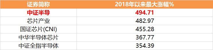而拉长时间来看,2018年以来,半导体设备ETF(561980)跟踪的中证半导指数区间最大涨幅将近495%,居同类指数第一。